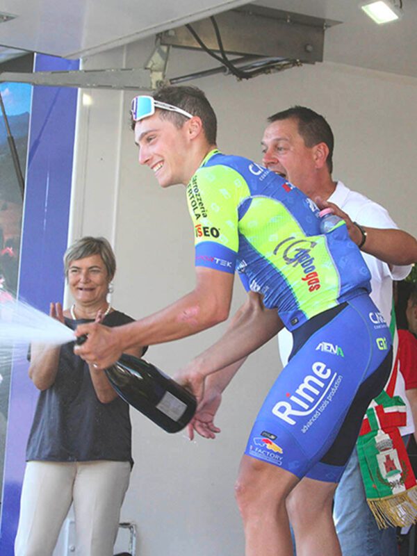 Dall’arrivo si vedono perfettamente le battute finali di oggi: nel gruppetto iniziano gli attacchi, ma è Giosuè Epis (Carnovali-Rime) a sferrare la pedalata decisiva, come lui stesso ci racconta a pochi minuti dall’arrivo.