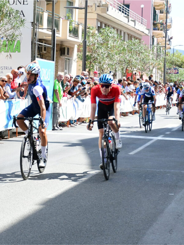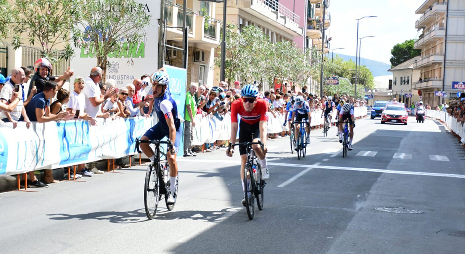 CHIAVARI – Quando lo speaker annuncia che c’è un uomo solo al comando nel tratto in discesa, e che si tratta di Lorenzo Finn, ci vengono in mente le sue parole di questa mattina. Il giovane ligure corre a pochi chilometri da casa e conosce bene quelle curve. Un allungo a 30 chilometri dal traguardo che però non porta un vantaggio in termini di tempo. A Chiavari si è presentato un gruppetto di nove corridori e la volata viene vinta dal francese Maxime Decomble, che anticipa Storm Ingebrigtsen e Lorenzo Mottes (foto Fruzzetti in apertura). Una volta tagliata la linea di arrivo in centro a Chiavari Lorenzo Finn ci spiega tutto:
