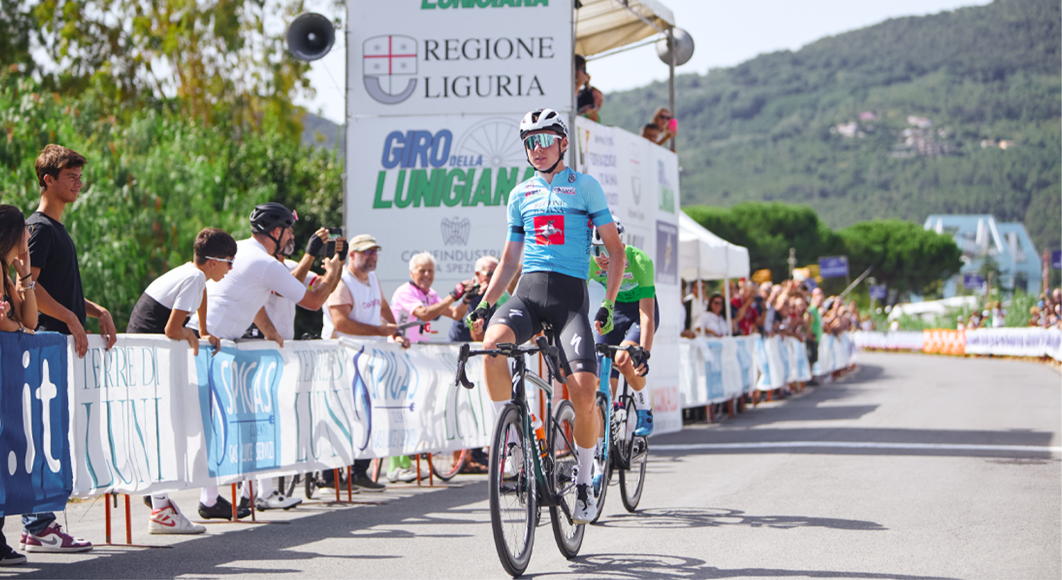 TERRE DI LUNI – Il terzo round della sfida che ci ha accompagnato per tutto il Giro della Lunigiana lo vince Lorenzo Finn. La prima vittoria di tappa dopo due partecipazioni per il ligure che ha provato a vincere la Corsa dei Futuri Campioni in entrambe le edizioni (in apertura foto Duz Image / Michele Bertoloni). Sulla sua strada però si è sempre trovato davanti un corridore francese. Nel 2023 era stato Leo Bisiaux a toglierli la vittoria, mentre quest’anno ci ha pensato Paul Seixas a rovinargli i piani. Il ligure della Grenke Auto Eder ha attaccato sia ieri che oggi, ma non è riuscito a scalfire la leadership di Seixas.