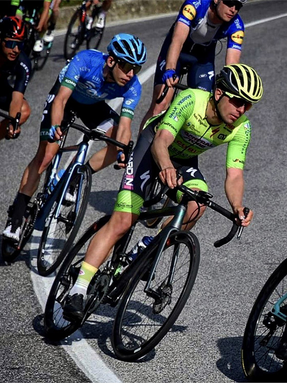 Giorgio organizza dei ritiri infrasettimanali a Verona con la squadra e andiamo in Valpolicella soprattutto. Lì hai tutte le salite che vuoi. Altrimenti mi organizzo con la macchina e con altri corridori andiamo verso Vittorio Veneto. Altre volte mi aiuta un mio amico, Gino De Vecchi ex corridore e confidente, che mi fa fare dietro motore.