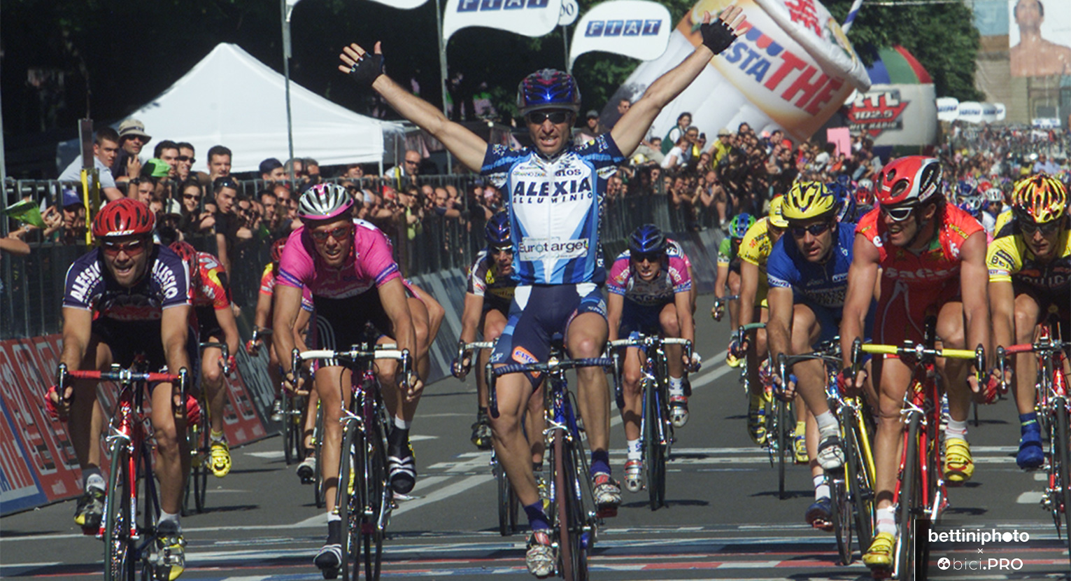 Ventotto anni sono tanti e non sono stati sempre di rose e fiori. Nel mezzo ci sono stati quelli del dilettantismo nella stessa squadra che ora guida dall’ammiraglia. Poi quelli del professionismo, con 39 vittorie fra cui 6 tappe al Giro, che probabilmente sarebbero potute essere molte di più. I racconti dei festeggiamenti in discoteca con Stefano Giuliani. E una carriera spesso sul filo per un ragazzo che del velocista incarnò ottimamente anche l’estro e la follia. E poi, sempre pensando a lui, c’è un quesito che cerca risposte nel silenzio dei velodromi italiani. Perché mai non ci sono più ragazzi che si dedicano alla velocità, quantomeno nelle categorie giovanili?