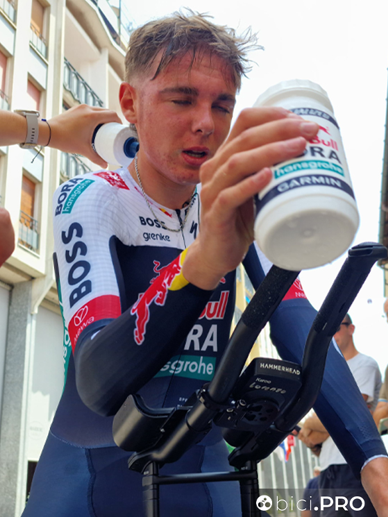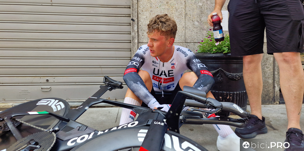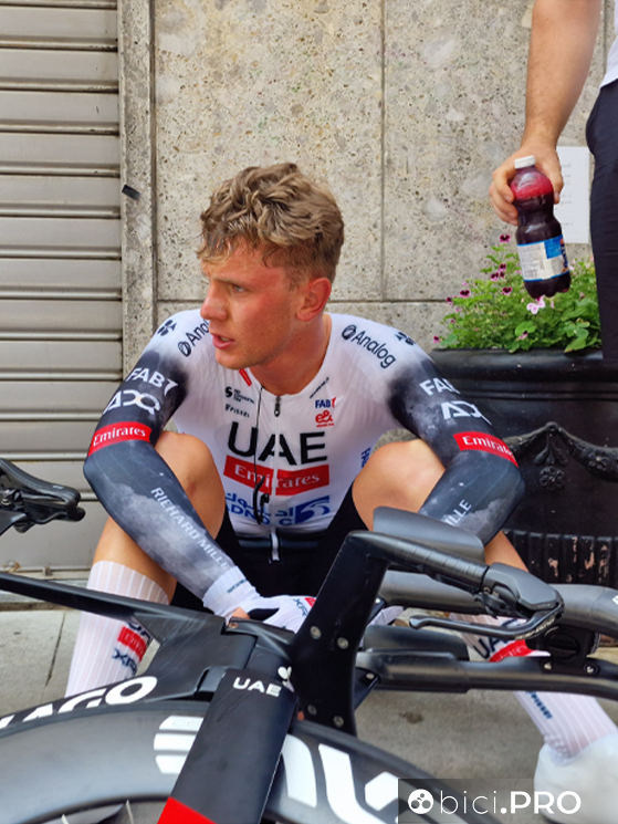 Ogni passaggio sotto all’arrivo coincide con bocche spalancate alla ricerca di aria e schiena piegate dalla fatica. Luca Giaimi del UAE Team Emirates Gen Z è uno di quelli che ha sofferto maggiormente il caldo di oggi e dopo l’arrivo fatica a trovare le energie per tenersi in piedi.