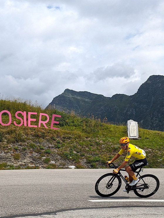 Sul Iseran è proprio la Colombia a menare. Però scattano Arrieta e Garofoli. Poco dopo ecco Rodriguez. Vorrà suggellare la maglia a pois, tutti pensano. Invece, al Gpm lo spagnolo tira dritto e si butta come un falco sulla Val d’Isere. Dietro è lo scompiglio. La maglia gialla è sola. Il fratello Anders è dietro. Zana non c’è. «Dopo i 2.500 metri di quota ho un po’ pagato», ammetterà a fine corsa. Garofoli si ferma in cima ad attenderlo e lo riporta dentro. E la stessa cosa fa più tardi Anders per aiutare il fratello in giallo.