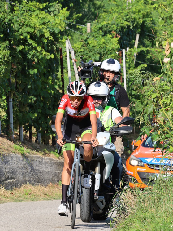 Dopo la prima sul circuito cittadino di Castelfranco Veneto ci siamo spostati nella zona di Valdobbiadene. Il secondo giorno era in programma una cronometro, volevamo disegnare un percorso più ondulato, ma non è stato possibile a causa delle direttive sulla chiusura del traffico. Abbiamo virato su due circuiti cittadini: uno più corto sul quale hanno corso le esordienti. L’altro, più lungo, era per le allieve e le juniores.