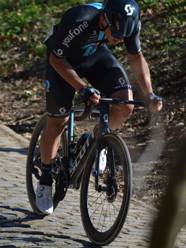 «C’era stata una caduta nella prima parte del gruppo, io per non finire a terra ho appoggiato il piede. Solo che da dietro arrivava l’altra metà del gruppo, che mi ha travolto schiacciandomi contro l’asfalto, causandomi, appunto, questa frattura. Ho fatto due mesi con il gesso ed ero completamente fermo, in quel periodo ho perso tutta la massa muscolare. Nei mesi successivi mi hanno messo un tutore di supporto ed ho iniziato a fare riabilitazione con palestra ed i classici elastici per riprendere un po’ di forza. Da un mese a questa parte mi sono rimesso in bici, e da inizio settembre sono tornato in corsa».