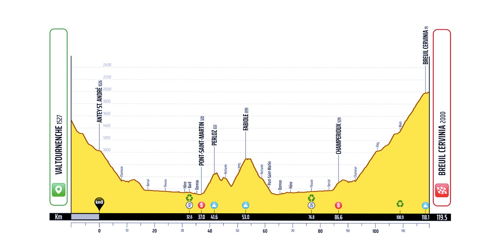 Quello che ci è parso di notare è che si tratti di un’edizione meno dura rispetto agli ultimi anni. C’è una tappa veloce in avvio, una cronoscalata che è certamente impegnativa ma nel complesso riduce il dislivello. E soprattutto ci sono tre arrivi pedalabili, l’ultimo dei quali, quello di Cervinia, non è preceduto, come sempre accedeva in questi ultimi anni, dal Saint Pantaleon.