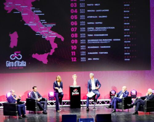 Presentato a Milano il Giro d'Italia 2023. Tre crono per Evenepoel? Ma anche tanta salita per i suoi rivali. Via da Fossacesia il 6 maggio. Arrivo a Roma