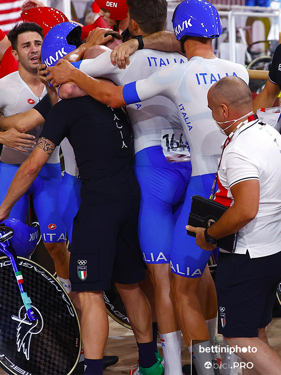 Vai Marco, valli ad abbracciare e canta insieme a loro per i fratelli d’Italia che oggi sono stati inchiodati agli schermi con voi, dando gas in quegli ultimi tre giri al grande Pippo Ganna, arrivato con gambe ancora potenti grazie al lavoro degli altri. L’avete visto quel gesto? Era la dedica a chi ha dubitato di lui dopo la crono. Con il primo oro per bici.PRO nella sua giovane storia, rivendichiamo il titolo fatto quel giorno: questa sconfitta sarà benzina per la pista. Izu è in fiamme. E l’incendio l’abbiamo appiccato noi.