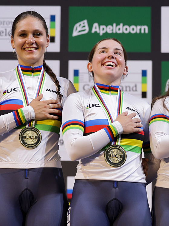 Io sono arrivata al keirin che era il mio quinto giorno di gara, ero stremata, penso più di testa che di fisico. Inoltre ricordavo l’europeo dove avevo sbagliato tutto, era la gara alla quale tenevo di più. Ad Apeldoorn nelle qualificazioni ho sbagliato ancora e non mi sono qualificata, ma poi ho vinto i ripescaggi e in semifinale sono riuscita a entrare nelle tre per la finale. Prima della gara ero proprio tranquilla, forse perché avevo già vinto nella rassegna. Ivan mi ha detto di pensare solo a divertirmi, magari evitando di farmi male… Quindi io sono salita in bici che avevo il cuor leggero. Mi sono fatta guidare dall’istinto. Ho visto la tedesca che partiva e l’ho seguita, è suonata la campana e sono partita senza starci a pensare ed è andata bene.