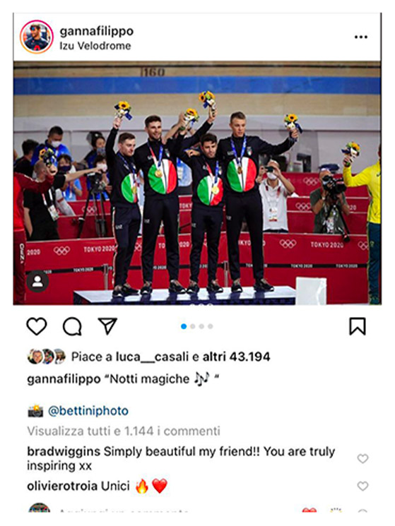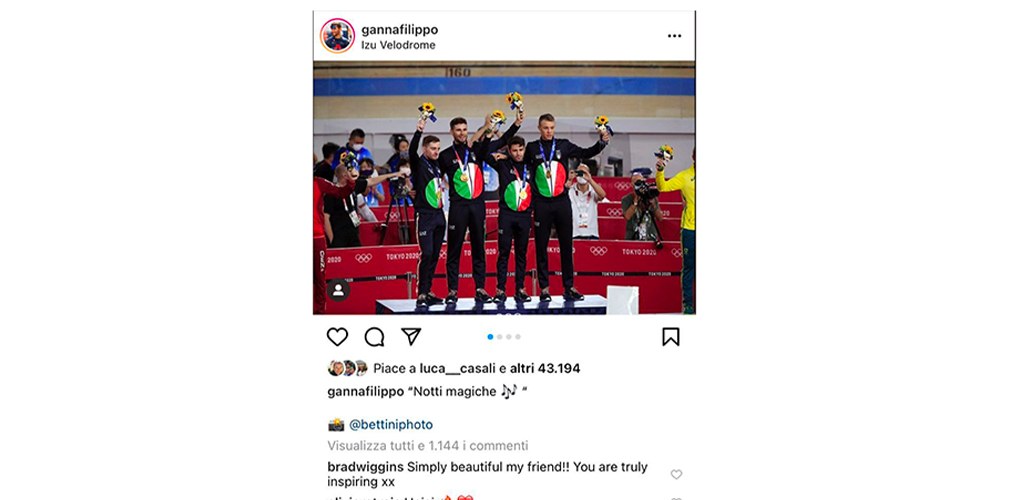 Anche l’apporto di Pinarello ha permesso di fare la differenza: per Ganna un rapporto che inizia dalla Ineos e arriva alla nazionale Con questo commento al post di Ganna su Instagram, Wiggins lo definisce un’ispirazione