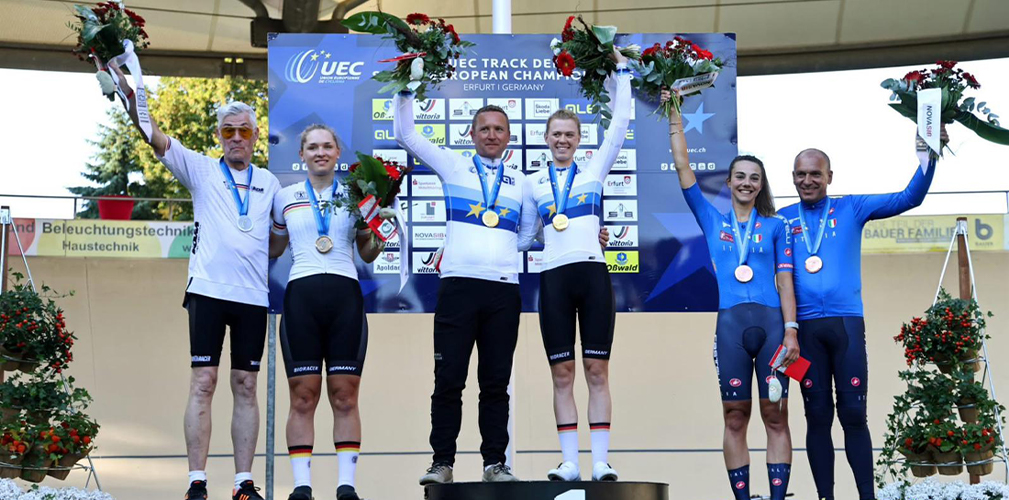 Otto anni dopo Arianna Fidanza è tornata a girare su pista, anzi a gareggiare. Negli europei di Erfurt, in Germania, la bergamasca ha conquistato la medaglia di bronzo nel derny (in apertura foto UEC). Un metallo importante per il suo rientro in pista, un’occasione arrivata all’improvviso e che stava per sfumare vista la brutta caduta che l’ha vista coinvolta al Kreiz Breizh.