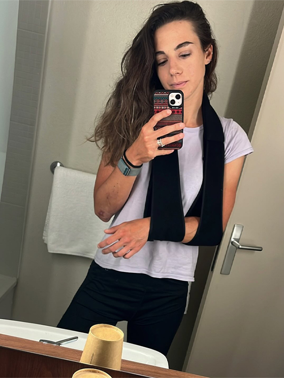 «La dinamica dell’incidente – spiega l’atleta della Laboral Kutxa – è stata banale: eravamo in fuga in tre, con strada bagnata e nell’affrontare una curva la ragazza davanti a me è caduta. Io per evitarla ho frenato, ma appena ho toccato i freni mi è scivolata via la ruota anteriore. Sono andata a terra con il peso tutto sulla spalla. In ospedale mi hanno detto che non c’era nulla di rotto, ma un distaccamento tra la clavicola e l’acromion. Sono rimasta ferma per quattro giorni, nei quali non sapevo se sarei riuscita a correre o meno».
