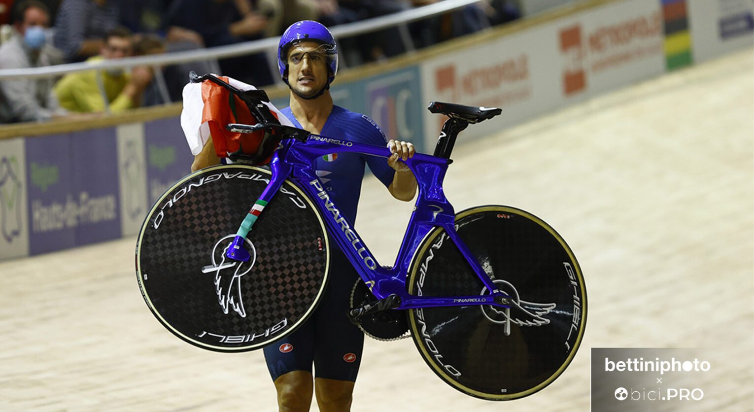 Al via del quartetto c’erano tre bici e tre caschi d’oro, mentre una bici e un casco erano semplicemente azzurri. Ed erano quelli di Liam Bertazzo. Il veneto ha fatto parte della spedizione per Tokyo, ma come lui stesso ci disse: si è visto passare la storia davanti.