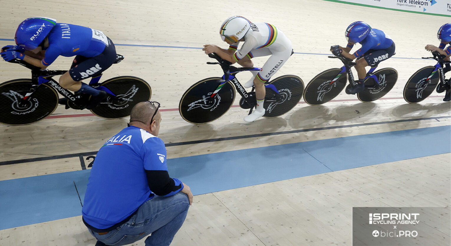 Marco Villa segue da sempre la ragazza, tanto è vero che l’ha inserita nel team iridato lo scorso anno dandole una nuova spinta e facendone addirittura l’unica reduce dal trionfo mondiale nel team che a Konya ha colto il bronzo. «Con lei abbiamo un metodo che usiamo un po’ per tutti, in questi anni abbiamo dimostrato che non ci interessa l’uovo oggi, ma la gallina domani, quindi con Federica stiamo andando in questa direzione, come è stato con Ganna, con Milan, con le altre. Sappiamo che sono ragazze che hanno anche attività con le squadre del WorldTour, hanno programmi e carichi di lavoro non indifferenti, quindi cerchiamo di andare di pari passo».