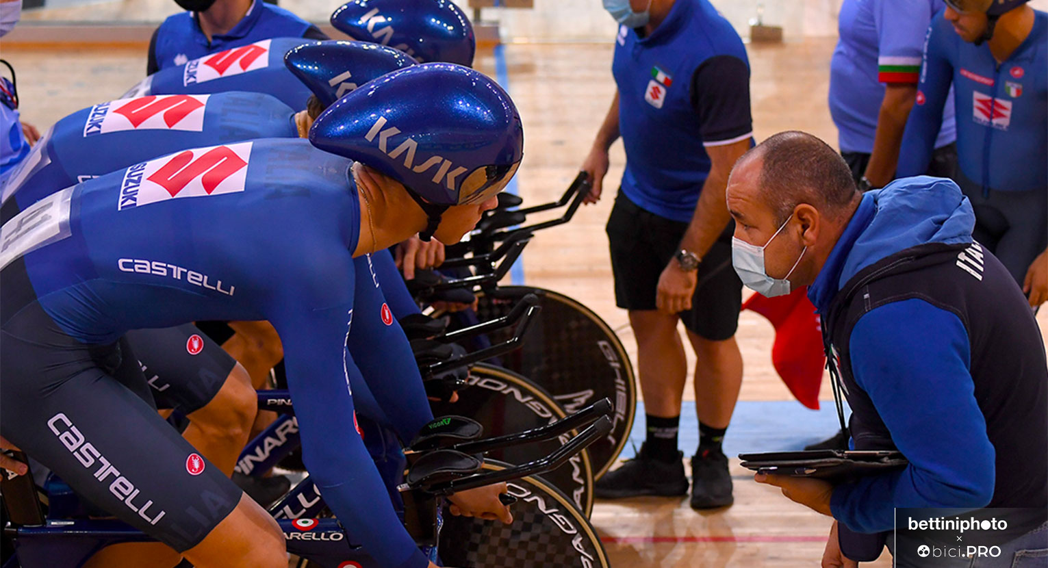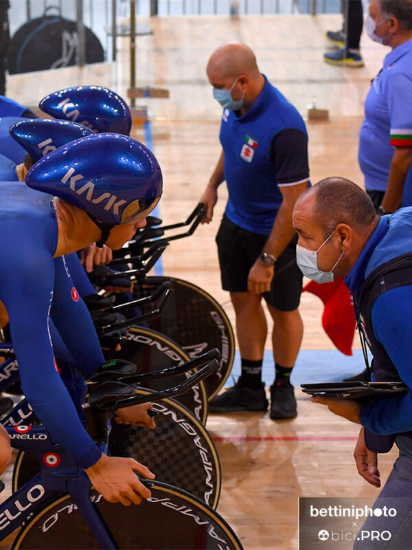 Marco Villa racconta, spiega, descrive. La storia ve l’abbiamo raccontata nei giorni scorsi. Nell’anno del Covid, ci sono ancora gli europei su pista. L’Italia è pronta per partire, quando prima Ganna poi Scartezzini e Bertazzo vengono trovati positivi al tampone. Si parte con un quartetto ricomposto in extremis, con Gidas Umbri e Matteo Donegà, ma si parte. Qualcuno dice che se ne poteva fare a meno, perché le nazionali sono tutte rimaneggiate, ma allora per lo stesso criterio si potevano evitare anche i mondiali di Imola.