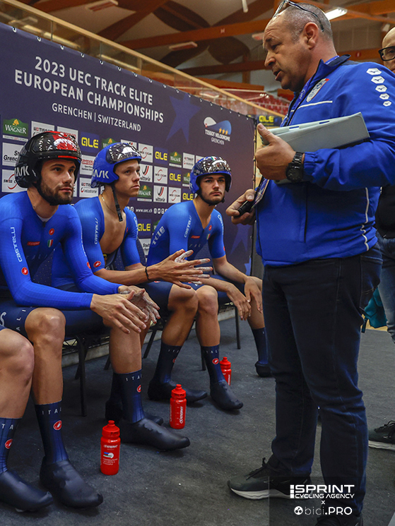 Quest’anno abbiamo con noi il Gruppo Performance che consente di rivedere ogni singola gara al video nel minimo dettaglio. L’abbiamo esaminata minuziosamente e ho mostrato loro quel che non è andato: con Lamon abbiamo deciso di cambiare qualcosa rispetto a Tokyo, ora fa due giri e mezzo di lancio invece di due, il che gli consente di spendere ancora qualcosa per lanciare il quartetto, ma chiaramente va a discapito della sua seconda parte di rilancio. Bisogna dargli il tempo per recuperare, ma a Grenchen non è stato fatto, perché Milan e Ganna non hanno cambiato nei tempi giusti. Bastava tirassero mezzo giro meno a testa e avrebbero dato a Francesco la possibilità di dare un secondo strattone prima di staccarsi. Sono cose che abbiamo rivisto con i ragazzi, per capire dove hanno sbagliato e che cosa fare le prossime volte.