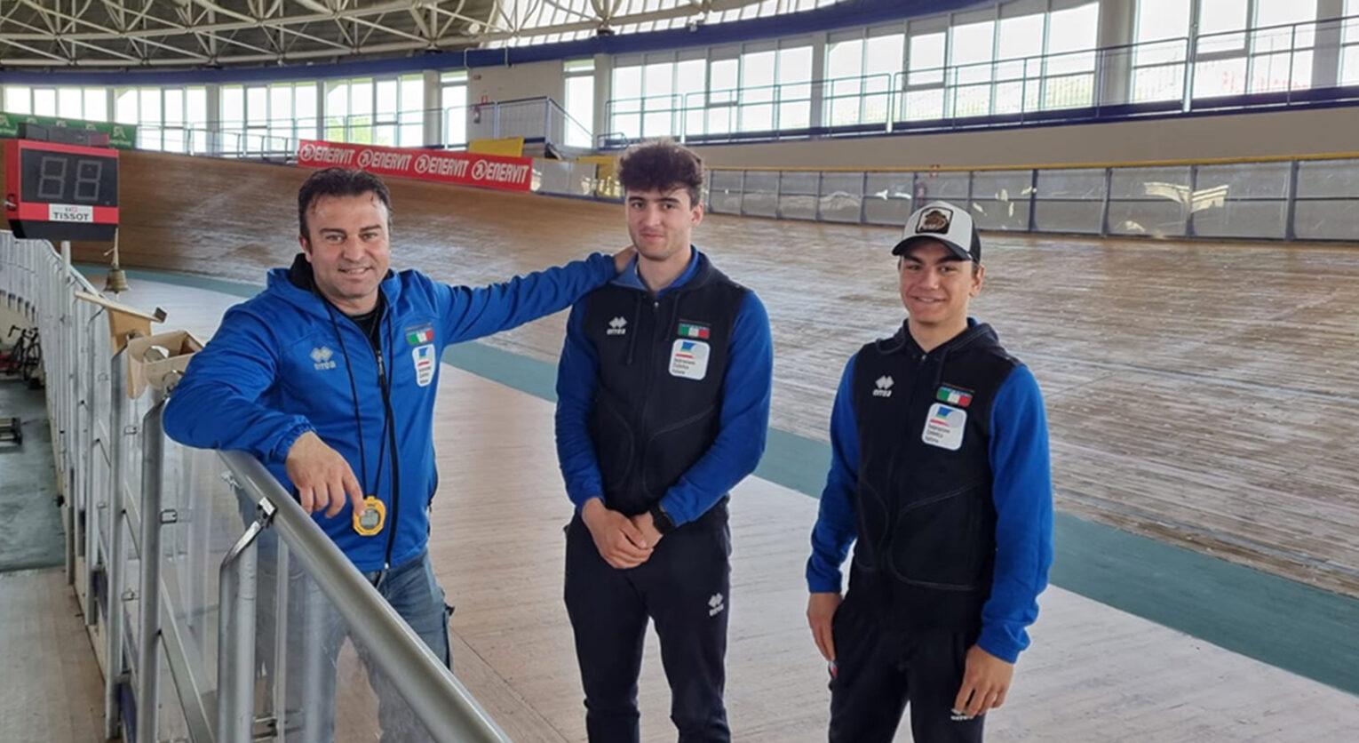 La prima domanda, un sospiro e una battuta divertita come risposta. «Come ho trovato la velocità della pista italiana? Eh, potrei dirvi come la penso ma dopo dovrei uccidervi! Come facciamo?». Ivan Quaranta (in apertura con Matteo Bianchi e Mattia Predomo, foto FCI), che chiamavano “il Ghepardo”, apre la nostra chiacchiera con una zampata (di spirito) proprio come terminava le volate da corridore.