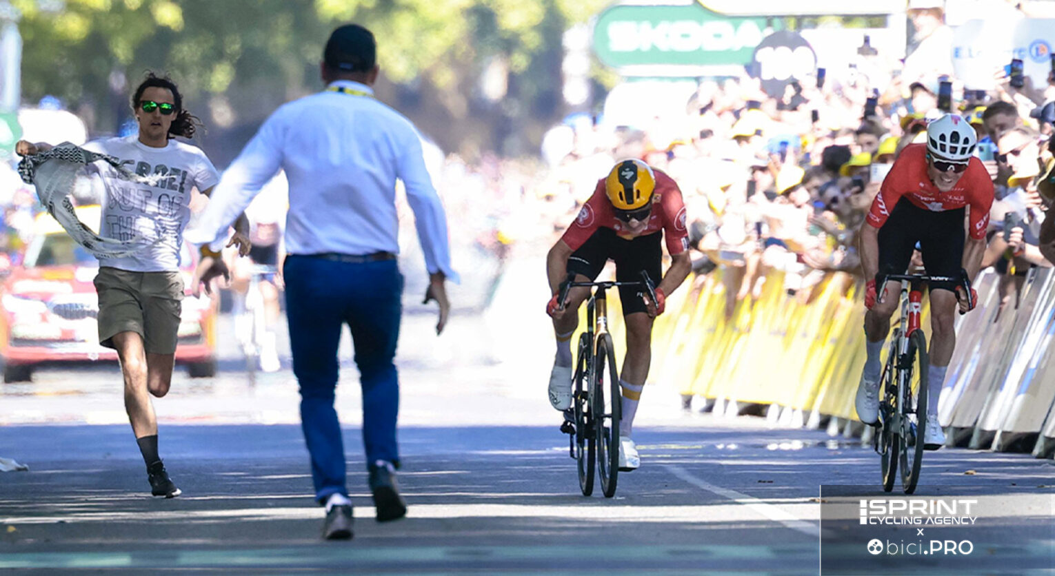 Ora che invece la tragedia sta dilaniando Gaza e nell’indifferenza sta portando alla morte per fame dei suoi abitanti, con un bilancio provvisorio di oltre 40.000 vittime (nell’attentato al rave del 7 ottobre ne furono uccisi 1.200 e 250 vennero rapiti dai terroristi di Hamas: una risposta era necessaria, ma si è decisamente passato il segno), il mondo del ciclismo tace e va avanti. E’ il periodo dei rinnovi dei contratti, il Tour è appena finito e si va verso Vuelta, mondiali ed europei. Alcuni tifosi lungo la strada hanno sventolato bandiere palestinesi, mentre al Tour nel giorno di Tolosa (foto di apertura) un ragazzo ha corso con una maglietta che inneggiava all’espulsione della squadra. Ma ovviamente nulla è accaduto a livello ufficiale.