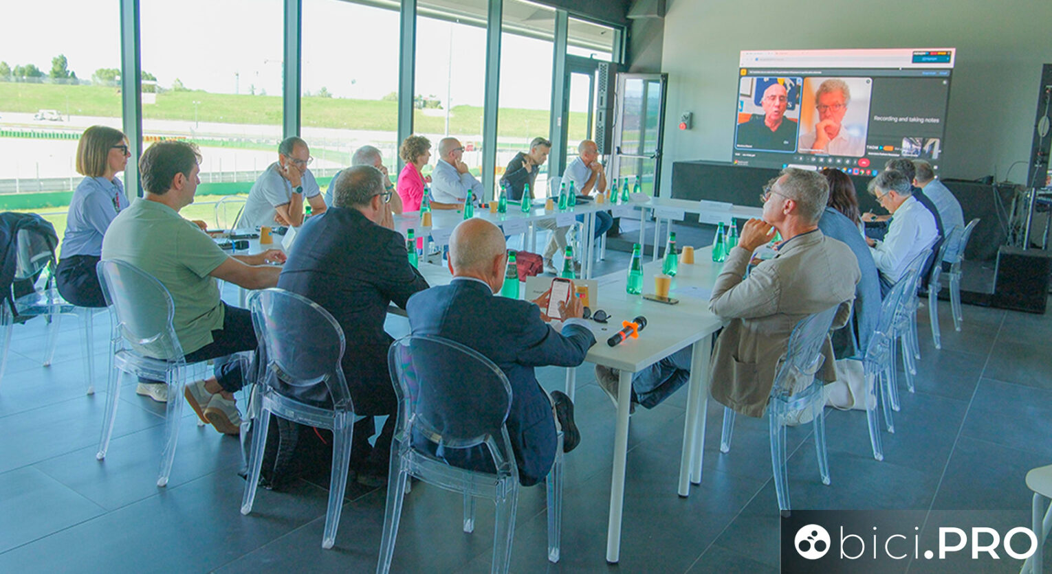 Italian Bike Festival apre i cancelli fra due ore. Ieri sera il parcheggio dell’autodromo era come una cittadina brulicante di uomini e mezzi. Stand da riempire, biciclette da montare sugli espositori. Intanto nella terrazza della grande tribuna centrale un convegno sulla sicurezza stradale ha raccolto diversi personaggi già molto attivi sul territorio nazionale. Persone di spessore, ciascuno nel suo settore. L’idea è quella di costituire un soggetto unico, composto da diversi attori, ma portatore di una sola voce. Almeno si è capito che la frammentazione fra i tanti soggetti non porta da nessuna parte. Lo ha detto ben chiaramente Davide Cassani.