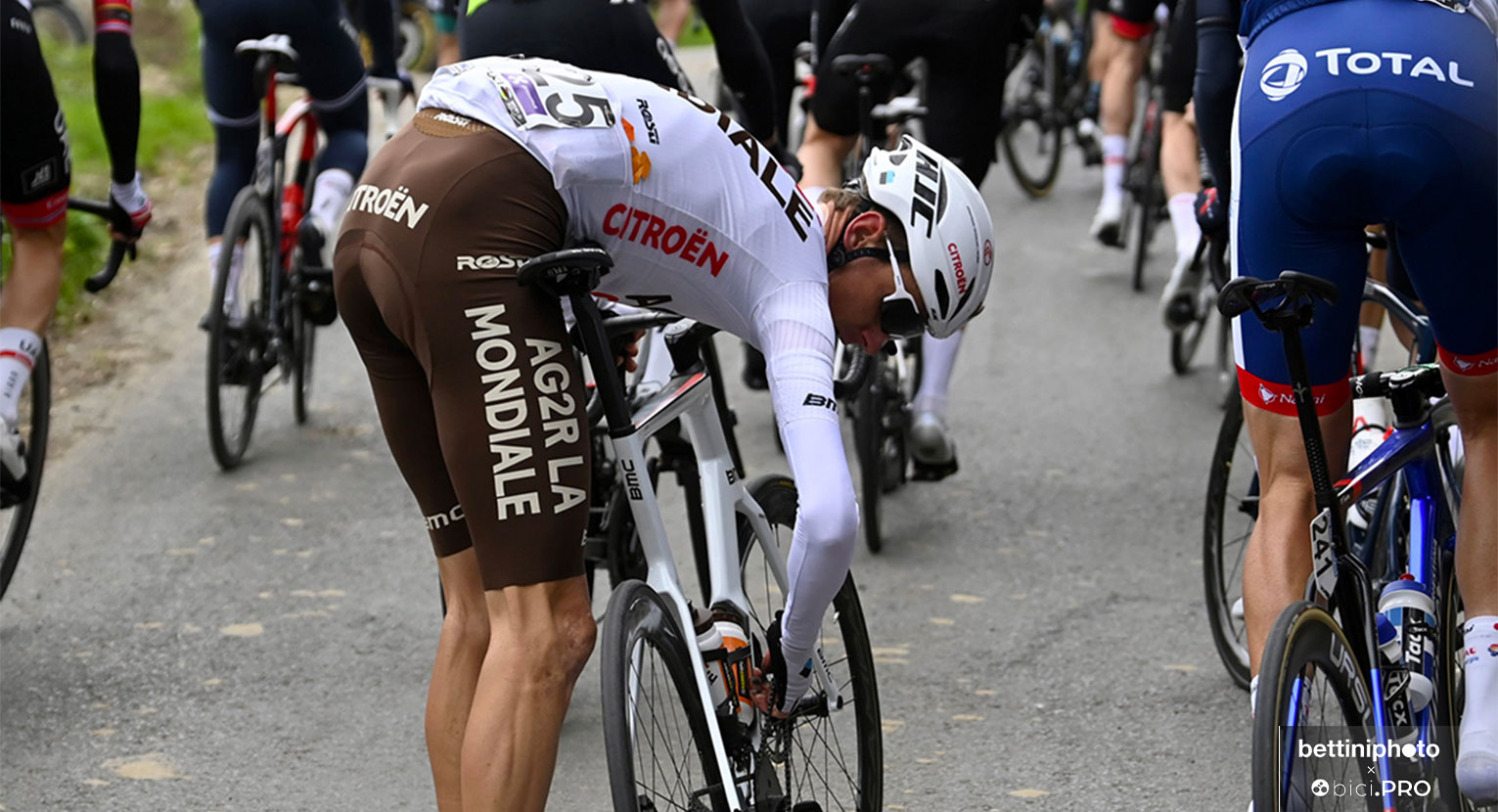 Chi doveva dirglielo a Michael Schar che non sarebbe stata la ripartenza per un salto di catena a metà di un muro a farlo fuori dal Fiandre, bensì il lancio della borraccia verso un gruppo sparuto di tifosi? Ci sarebbe da scherzare dicendo che se quelle persone non fossero uscite di casa, allo svizzero non sarebbe venuta la tentazione, ma si tratta ovviamente di una provocazione. E come Schar, poco dopo è stata fatta fuori dalla corsa anche Letizia Borghesi.