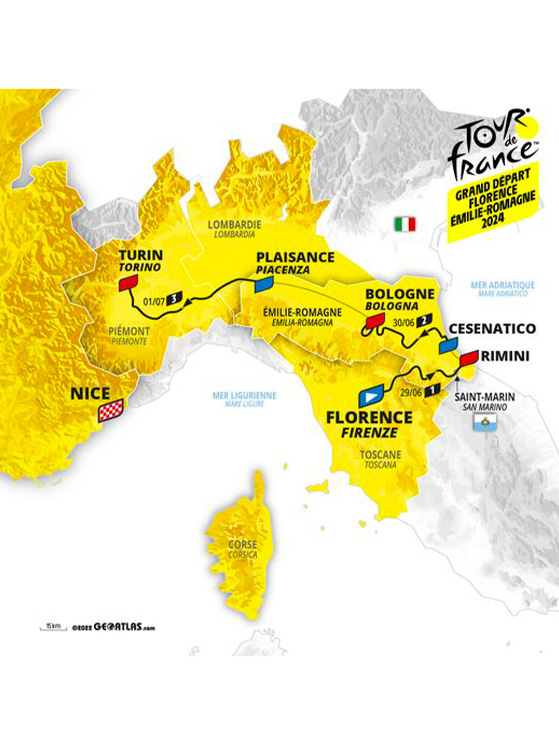«L’Italia è bellezza. Il ciclismo, il Tour uniscono. Questa cosa doveva accadere e per me è un onore. E’ un onore passare nelle terre di Bartali, di Pantani, di Coppi».