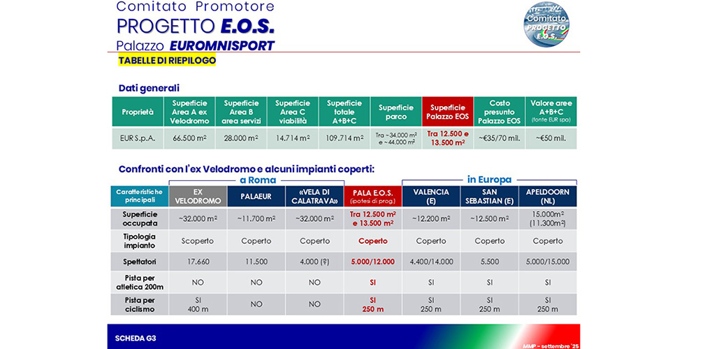 Quale iter bisogna seguire adesso? «Il primo passo è convincere la proprietà dell’area che è EUR SPA a orientarsi su una proposta del genere. I contatti finora lasciano spazio all’ottimismo. E’ una proprietà privata, ma a totale capitale pubblico al 10 per cento di Roma capitale, al 90 del MEF. E’ da fare anche un ragionamento economico sugli introiti che potrebbe avere un impianto del genere. Bisogna trovare le convergenze giuste dal punto di vista della proprietà e dell’amministrazione capitolina, perché bisogna fare una variante al piano regolatore per farlo ritornare all’uso sportivo.