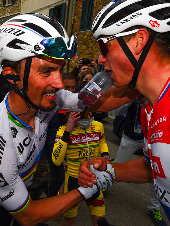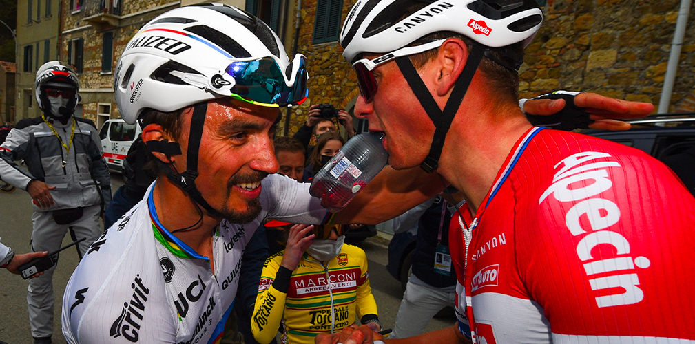 Il campione del mondo parla nella conferenza online della Deceuninck-Quick Step a capo di una prima parte di stagione che l’ha visto vincere una tappa alla Tirreno-Adriatico e centrare il secondo posto alla Strade Bianche, dietro Van der Poel. Nei giorni scorsi ha ammesso di aver pagato le corse italiane e come lui forse lo stesso fenomeno olandese. Del resto, se si corre ogni giorno come se fosse l’ultimo, prima o poi il corpo chiederà requie. E Van Aert, che rispetto ai due è quello che corre in modo più razionale, è arrivato sulle strade del Belgio con maggior margine.