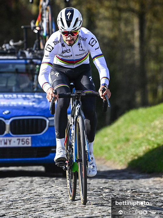 Già, non lo dice, ma all’elenco degli errori dello scorso anno, alla caduta del Fiandre va aggiunta anche la Liegi della scorrettezza ai danni di Hirschi e di Roglic che lo infila sulla riga. Ci sono tante macchie da lavare. E davvero questo secondo giro di classiche in maglia iridata comincia a sembrare una clamorosa possibilità di redenzione. In fondo la Pasqua non significa proprio questo?