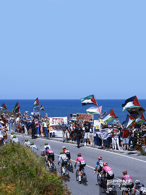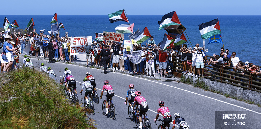 Anche oggi la protesta pro-Palestina lungo le strade della Vuelta si è fatta sentire