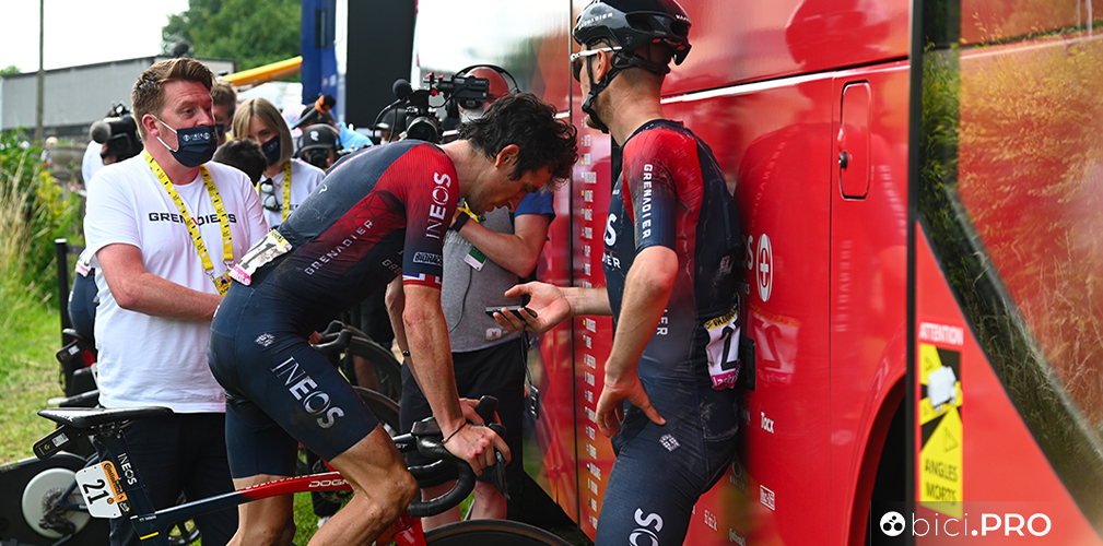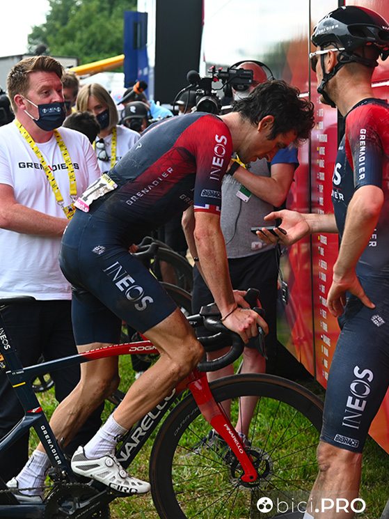 La tappa del pavé è finita da poco e il corridore della Ineos Grenadiers gira le gambe su rulli che cigolano e un po’ lo fanno ridere e un po’ chiede al meccanico che li faccia smettere. I compagni arrivano alla spicciolata. Van Baarle, il vincitore della Roubaix, si ferma più a lungo degli altri e ai due si avvicina anche Rod Ellingworth, il capo della performance del Team Ineos Grenadiers. Confabulano. E quando si sono chiariti, l’olandese sale sul pullman, mentre Geraint continua a girare e di colpo fa un cenno ai giornalisti rimasti ad aspettarlo.