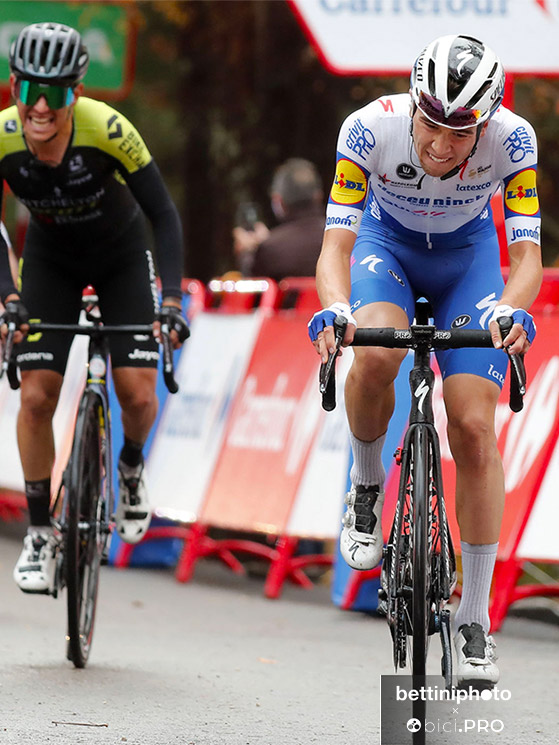 Bagioli stavolta ci ha provato. Mancavano poche centinaia di metri al traguardo di Suances, quando il valtellinese della Deceuninck-Quick Step ha visto partire Guillaume Martin e si è fiondato nella sua scia. La tappa poteva concludersi con una volata, per questo la squadra belga si era messa in testa a tirare per riprendere la fuga, con il tacito accordo che se Bennett non se la fosse sentita di fare la volata in salita, il peso della corsa sarebbe passato sulle spalle di Bagioli.