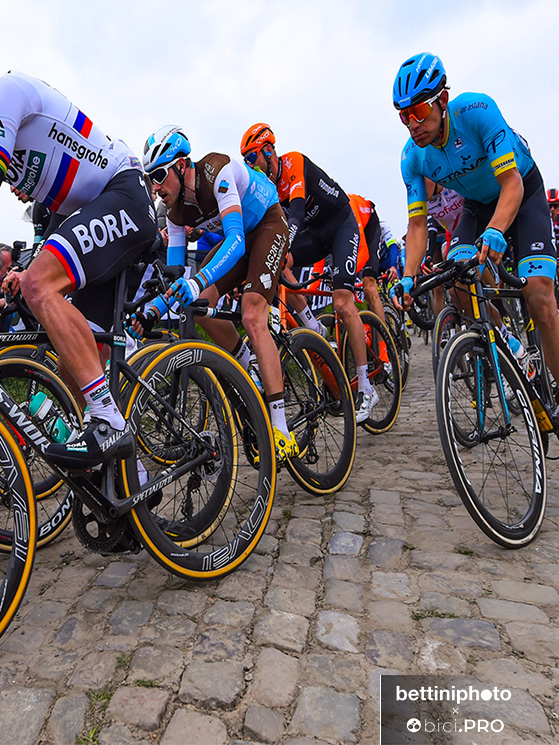 E’ decisivo avere il giusto comfort in bici e la pressione giusta delle gomme. I pezzi di pavé non sono tutti uguali, alcuni ti permettono di pedalare in banchina e allora cambia molto. Quel giorno, non sapendo che pesci prendere, mi francobollai a Sagan cercando di rubargli il mestiere. A lui e anche agli altri, perché ogni settore ha le sue traiettorie e i suoi segreti.