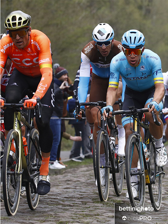 Andammo a fare una ricognizione tre giorni prima e le provai tutte fino a trovare quella più adatta. Chiesi molto a Zanini, nostro direttore sportivo all’Astana. Da un settaggio all’altro cambia il mondo e cambia anche da una squadra all’altra. Ai tempi usai una Argon 18 con tubolari da 28. Non so se quest’anno userò la stessa misura o più grandi, non so quali materiali. Comunque con una variazione di pressione di 0,3 oppure 0,5, si hanno bici completamente diverse.
