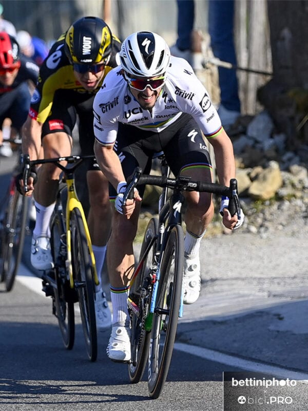 Il dietro le quinte di una corsa come la Sanremo è spesso la parte più interessante da raccontare ed ha sapori diversi in base all’esito della gara. Se fossimo qui a parlare di una vittoria, ci sarebbe da tessere le lodi dello stratega. Invece siamo qui a commentare il 16° posto finale di Alaphilippe e il distacco di 29” di Ballerini e Bennett.