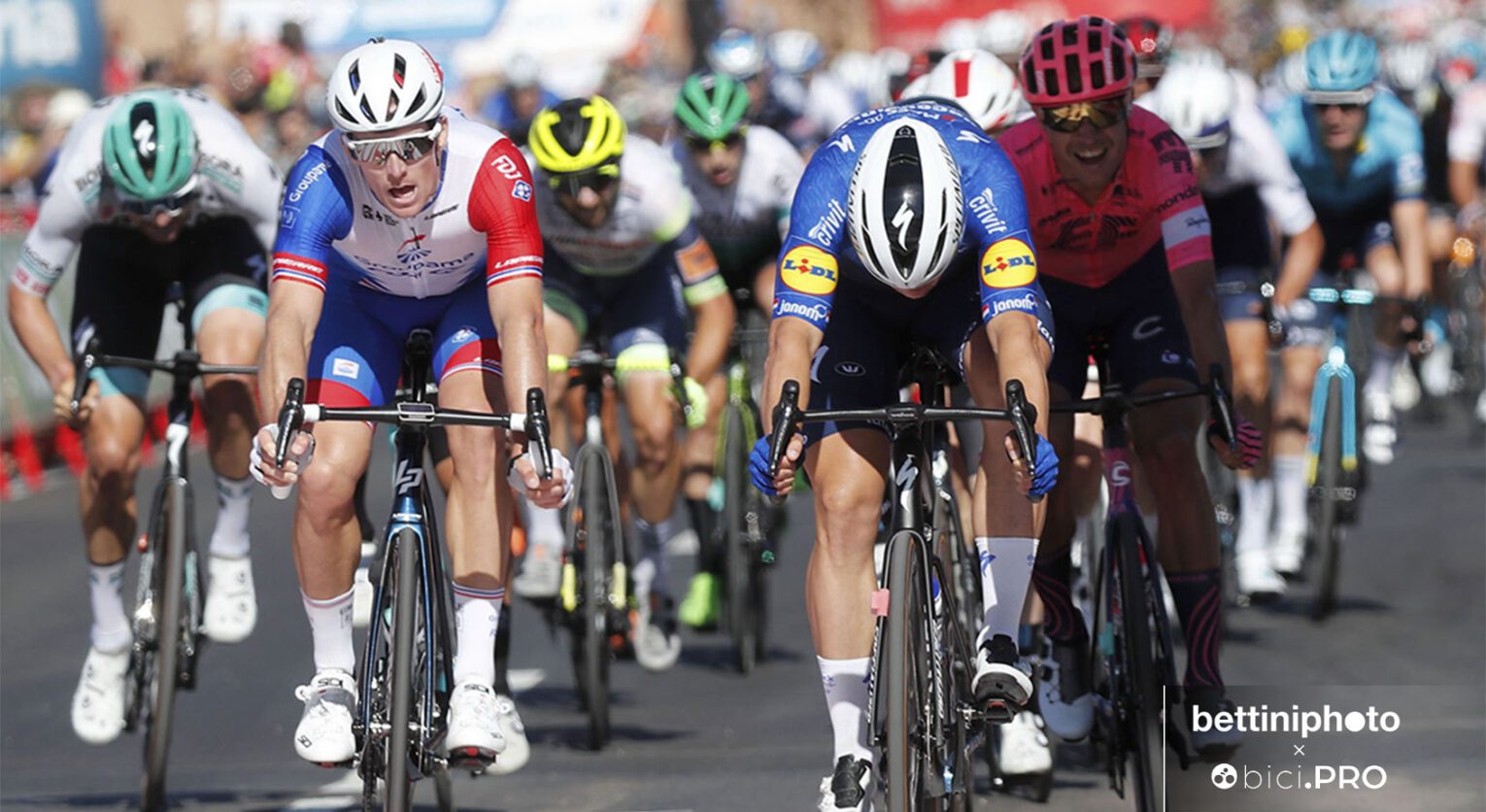 Oggi sull’arrivo di Molina de Aragón la volata non era affatto scontata. I velocisti se la sono dovuta sudare non poco. Ma se la Deceuninck-Quick Step mira a tenere la corsa chiusa… allora levatevi tutti! E infatti la vittoria è loro.