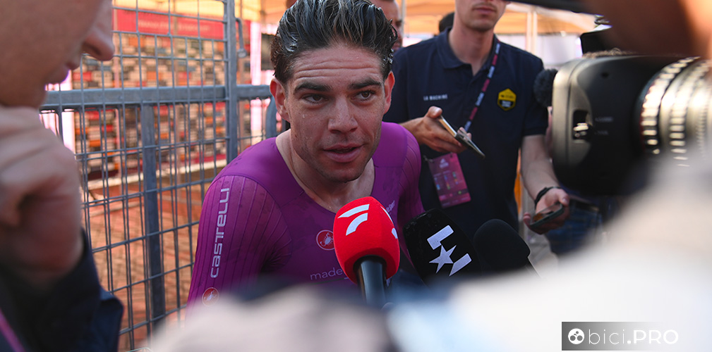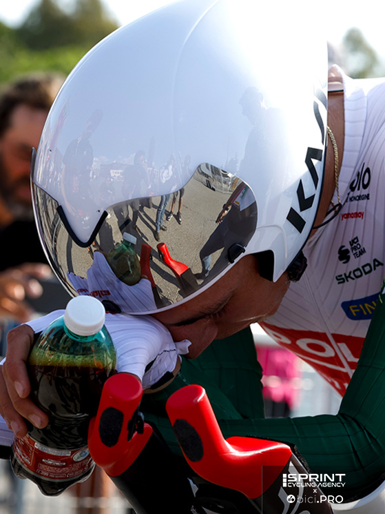 Il leader della Red Bull-Bora è sereno e sorridente. E non è solo per la conquista del primato, ma per una condizione mentale lontanissima dallo stress con cui viveva le corse prima dell’incidente del 2022. E così nel raccontare la giornata, sembra divertito e insieme contrariato per la conquista. Voleva fare bene la crono e questo avrebbe significato conquistare la maglia rosa, ma al contempo ne avrebbe fatto a meno. C’è un divertente controsenso nel suo raccontarsi e questo lo rende ancora più scompigliato e simpatico.