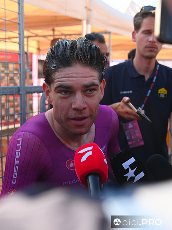 Non mi interessa più tanto dei risultati parziali. Mi hanno suggerito di non stressarmi per questi dettagli. Per cui mi basta sapere che sono in salute e che sto bene. Ho fatto una bella cronometro e arrivare così davanti è stato semplicemente una grande sorpresa. Ora ho anche questa maglia rosa ed è più facile perderla che conquistarla, per questo sono contento di averla addosso.