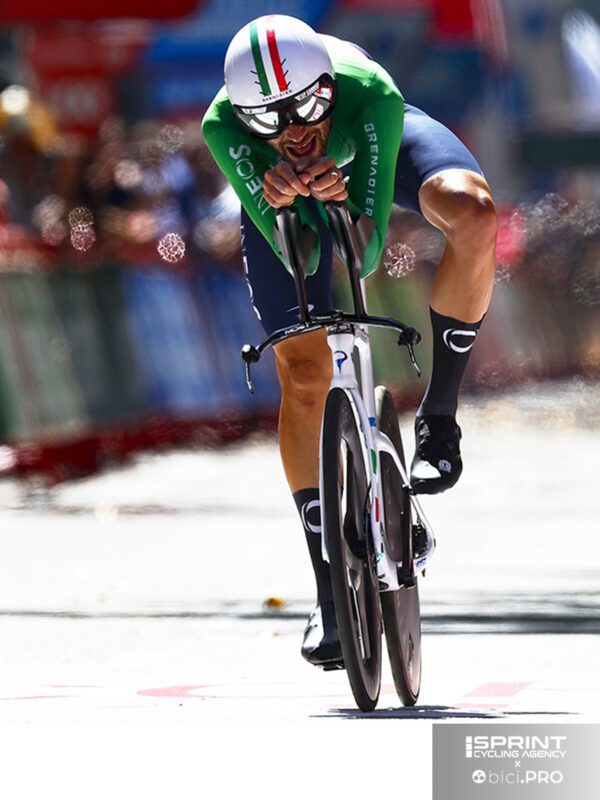 La Vuelta riparte domani con l’arrivo in salita a La Laguna Negra-Vinuesa e di sicuro Sepp Kuss sarà chiamato a un’altra difesa, mentre forse Evenepoel correrà di rimessa per assorbire le fatiche di oggi. Noi ci godiamo gli ultimi scampoli della vittoria azzurra, in una crono che ha visto primo il nostro gigante, secondo il campione del mondo e terzo il campione olimpico. In fondo, Remco avrebbe fatto più figura togliendosi il cappello.