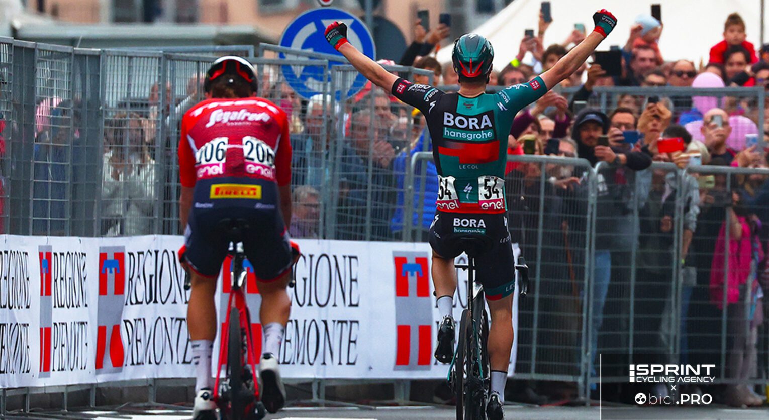 La vigilia del tappone forse faceva paura ed è stato così che il gruppo ha lasciato sganciare una fuga super numerosa, da cui a sua volta si sono avvantaggiati i cinque che si sono giocati la tappa. Che poi l’azione sia sembrata una svista più che un attacco non cambia il fatto che a Rivoli si siano trovati testa a testa Denz, Skujins e Berwick, mentre il tenace Tonelli è arrivato a 58 secondi, dopo aver chiesto al suo corpo più di quello che aveva sulla salita di Colle Braida.