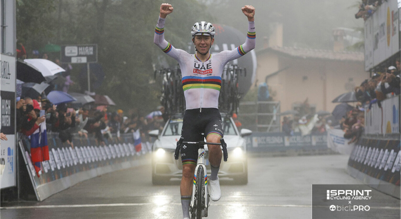 La classica bolognese era di fatto la rivincita del mondiale di Zurigo, ad eccezione di qualche assenza, ma per il leader della UAE Team Emirates non è cambiato nulla a parte la sua fiammante maglia iridata. Tutti gli avversari più accreditati sulla carta – su tutti Evenepoel e Roglic, che sul San Luca ci aveva già vinto quattro volte compresa la crono del Giro del 2019 – sono letteralmente spariti in mezzo alle nuvole basse. O schiacciati dal caterpillar sloveno, se preferite. A tenere alta con onore la bandiera italiana ci ha pensato Davide Piganzoli, terzo al traguardo a ruota di Tom Pidcock. Una soddisfazione enorme per il valtellinese della Polti-Kometa essere sul podio assieme al campione del mondo e al campione olimpico della Mtb.
