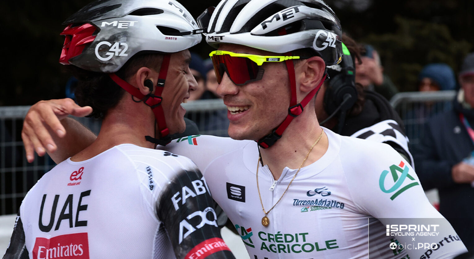 Una volta per soldi si andava via, oggi per soldi si resta. La storia del ciclismo è piena di ottimi corridori diventati gregari di corridori ancora migliori che, a un certo punto, allettati dalla corte di altre squadre, cambiarono maglia. Di solito succede nelle squadre dei dominatori, che amano circondarsi di super gregari. Ayuso e Del Toro diventeranno dunque la trama di romanzo giallo? La foto di apertura si riferisce ai giorni felici della Tirreno-Adriatico, anche se non c’è dubbio che per la conferenza stampa di oggi alle 15 la UAE Emirates avrà rimesso ogni tassello al suo posto. Quanto accaduto ieri (al pari di quanto accaduto all’ultimo Tour nel giorno del Galibier) ha dato però da pensare.
