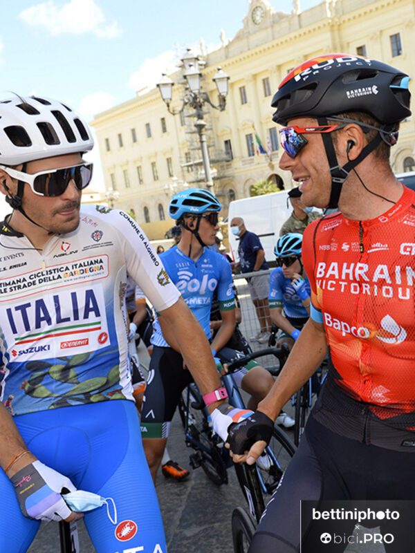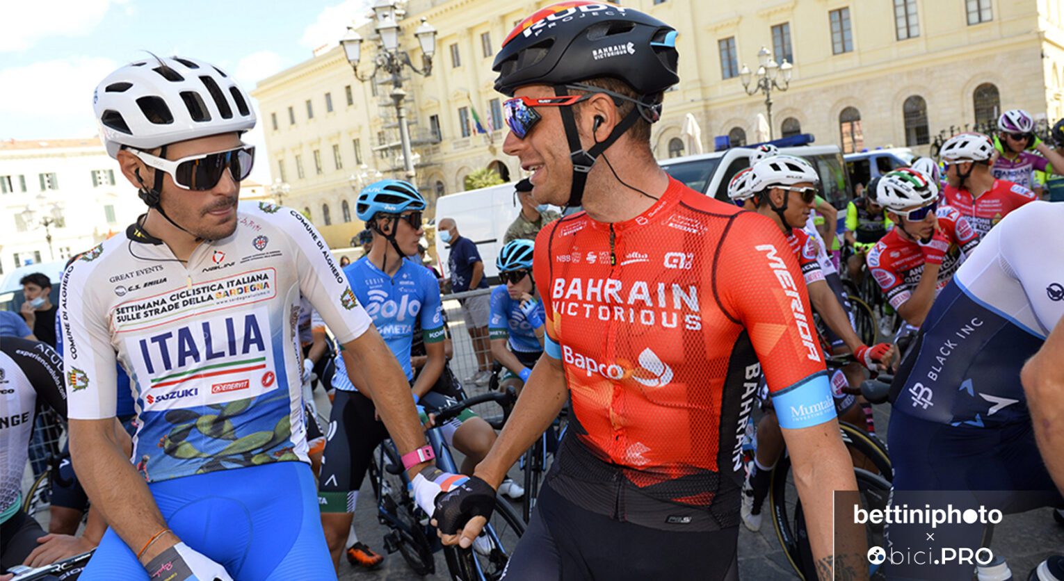 Si sono allenati da sé fra Livigno e lo Stelvio. Poi hanno corso in Sardegna (in apertura, Bettiol e Caruso).