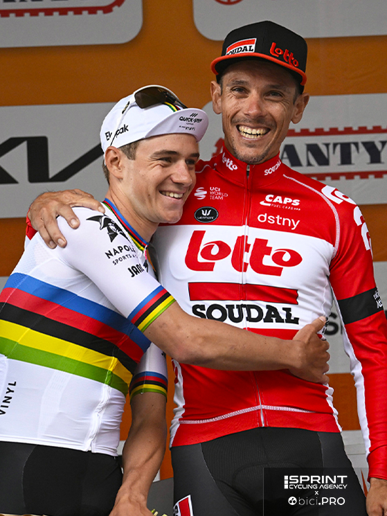 Il campione del mondo ha scelto le Maldive e poi Dubai per la luna di miele con sua moglie Oumi, ma anche se assente, la sua presenza è palpabile. Le voci sull’interessamento della Ineos Grenadiers infatti non accennano a sopirsi, mentre la tentazione di vederlo al Tour contro Pogacar spinge a superare ogni cautela. E qui però Patrick Lefevere non si fa problemi nel prendere posizione.
