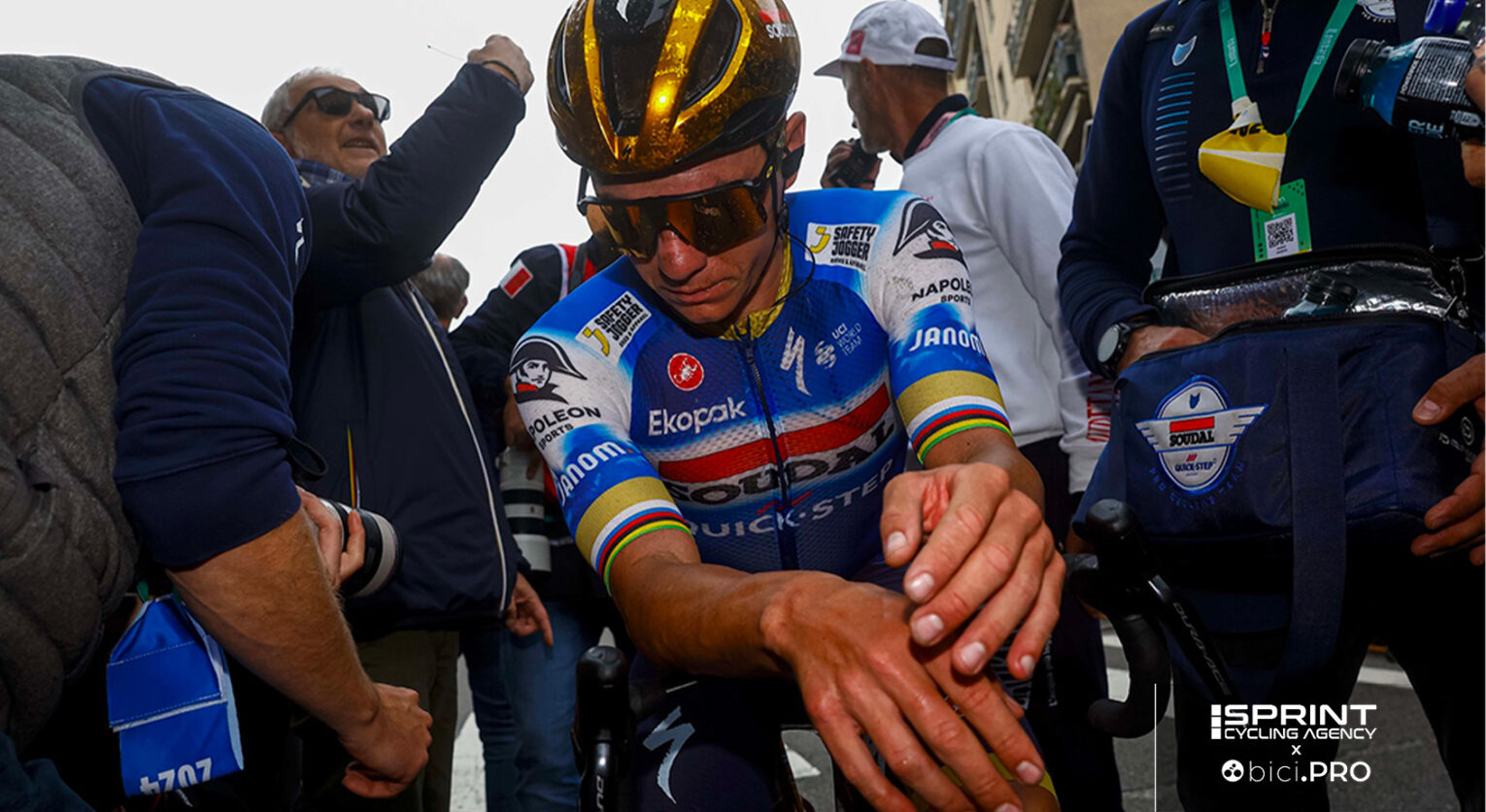 Dopo il Lombardia, Evenepoel ha pianto. Sul traguardo si è chinato sul manubrio, ha tolto gli occhiali e si è asciugato gli occhi. Non deve essere stato facile per lui ripassare sul ponticello del suo orribile salto nel vuoto e insieme tenere testa alla furia di Pogacar.