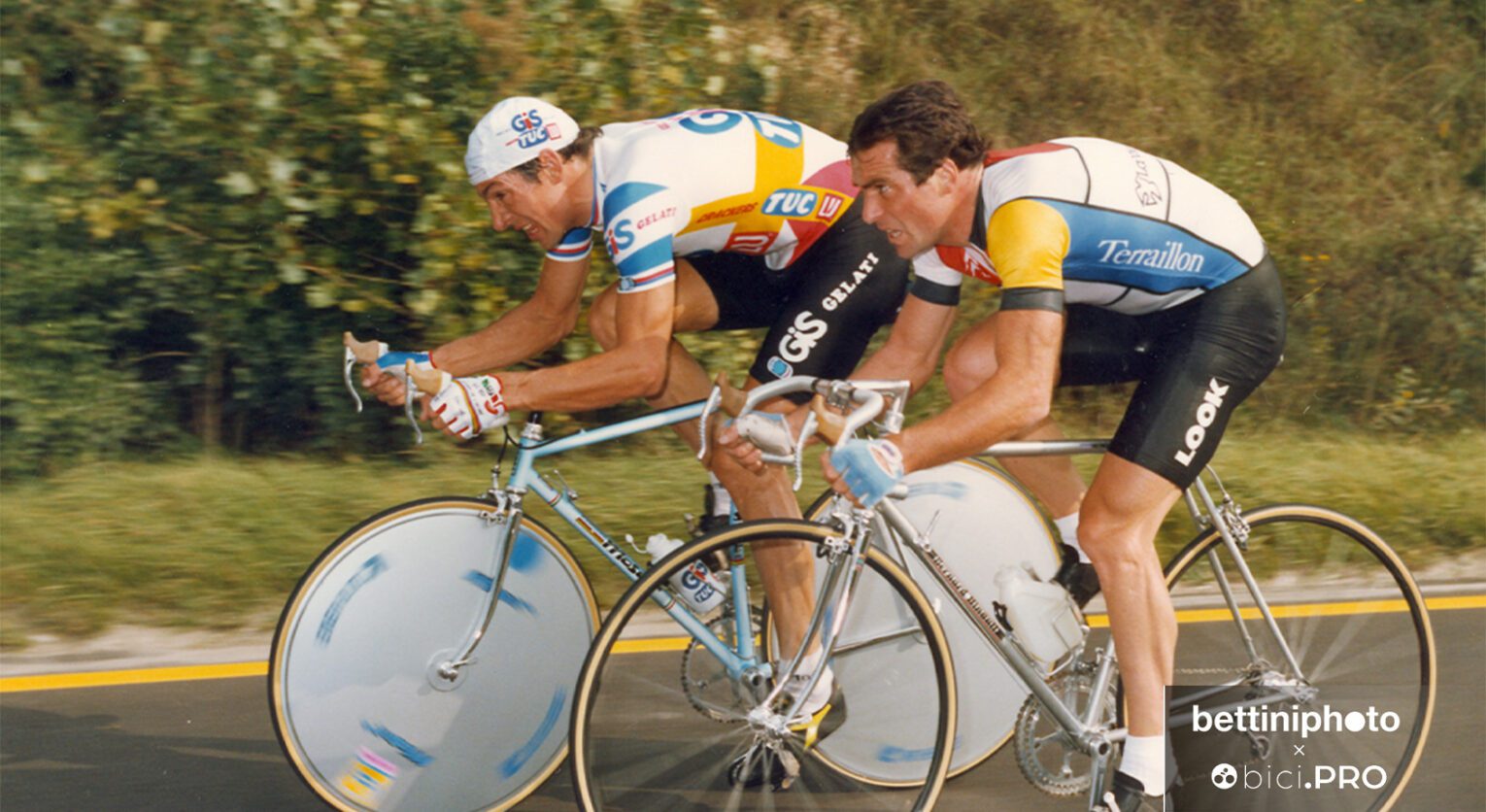 Ricordate il Trofeo Baracchi? In calendario dal 1941 al ’91 e dal 1949 con la formula della cronocoppie, era il classico appuntamento di fine stagione del ciclismo internazionale. Alcune coppie sono rimaste nella memoria della gente, come Fausto Coppi che dopo tre vittorie con Riccardo Filippi nel 1957 trionfò con il giovane Ercole Baldini olimpionico l’anno prima, oppure i grandi Altig e Anquetil trionfatori nel 1962, lo stesso Anquetil con Gimondi nel ’68, Moser e Saronni nel ’79, ancora Moser e Hinault nell’84 (foto di apertura) fino all’edizione del ’91, tornata individuale per concludere la Coppa del Mondo.
