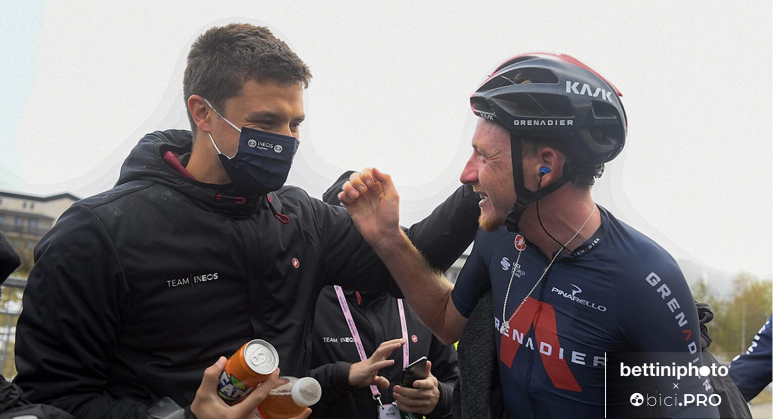 Il giovane Baffi, Piero come il nonno e garbato come il papà, scese di bici nel 2014 e si dedicò agli studi di Fisioterapia. Si era reso conto che il suo futuro poteva essere ancora nel ciclismo, ma non in sella. Così dopo tre anni, a partire dal 2017, entrò nello staff dell’attuale team Ineos Grenadiers. Come ben dimostra la foto di apertura, c’era anche lui lo scorso anno con Tao Geoghegan Hart nella spedizione che ha conquistato il Giro d’Italia.