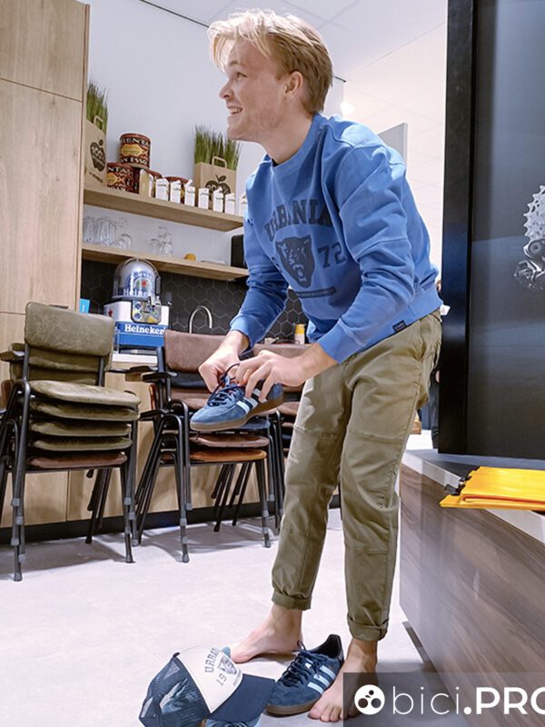 Capello biondo, guance da vichingo e una chiacchiera infinita. Tobias Foss parla con tutti. Si aggira nel Service Course della sua Jumbo-Visma e trova sempre il modo di attaccare bottone. E’ simpatico, solare, disponibile e soprattutto è forte. Il sorriso non gli manca neanche mentre sta provando le nuove scarpe dopo gara.