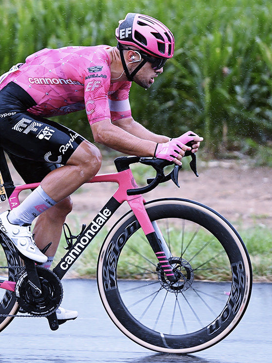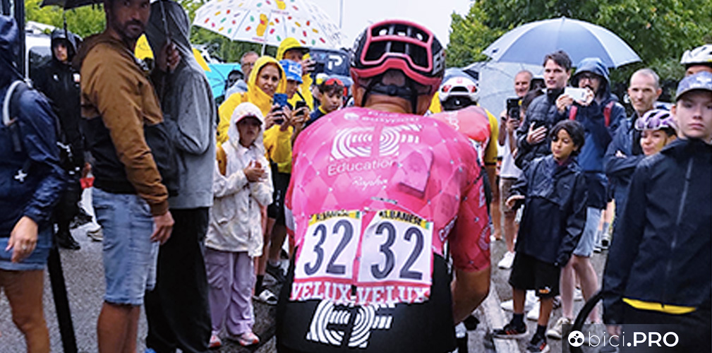 VALENCE (Francia) – Quando sfila sotto il diluvio universale, tra le persone e i bambini che cercano una borraccia, Vincenzo Albanese ha appena la forza per dirci: «Non ora, fa troppo freddo». E scappa verso il bus della EF Education-EasyPost, fermo circa 200 metri più avanti (in apertura foto ASO / Charly Lopez).