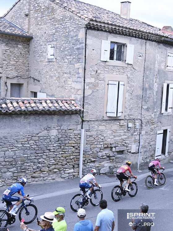 Complicazioni finite? Anche no! Sul secondo Gpm di quarta categoria, altro assalto: stavolta a provarci, è un gigante del gruppo: Wout Van Aert. Di nuovo, per i quattro davanti, è stato un “pancia a terra” per difendersi dall’asso belga.