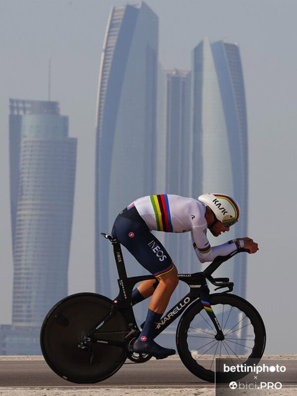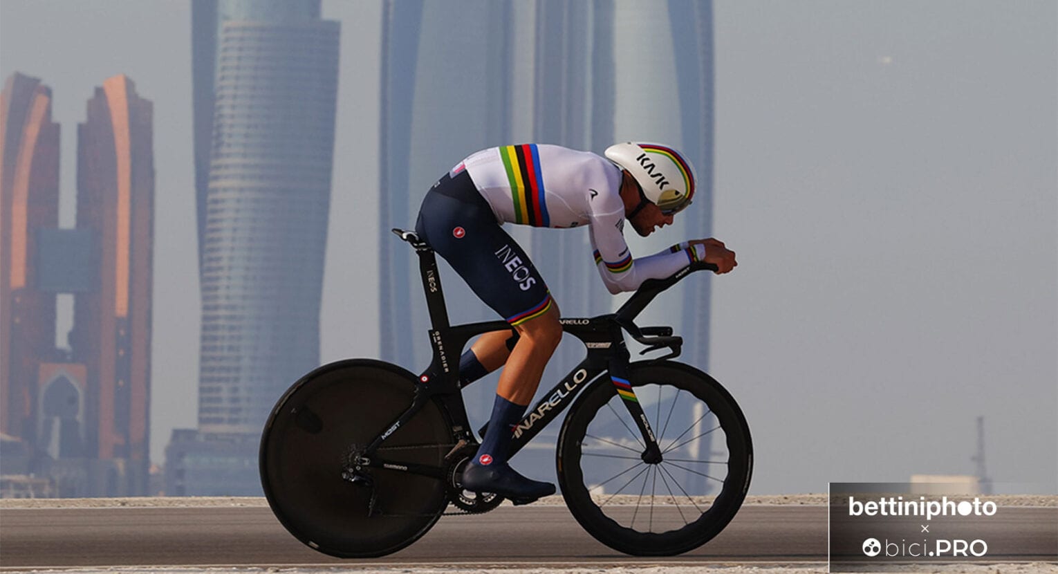 Nella pianura più totale degli Emirati Arabi Uniti, Filippo Ganna mette a segno la terza vittoria stagionale e l’ottava cronometro di fila.